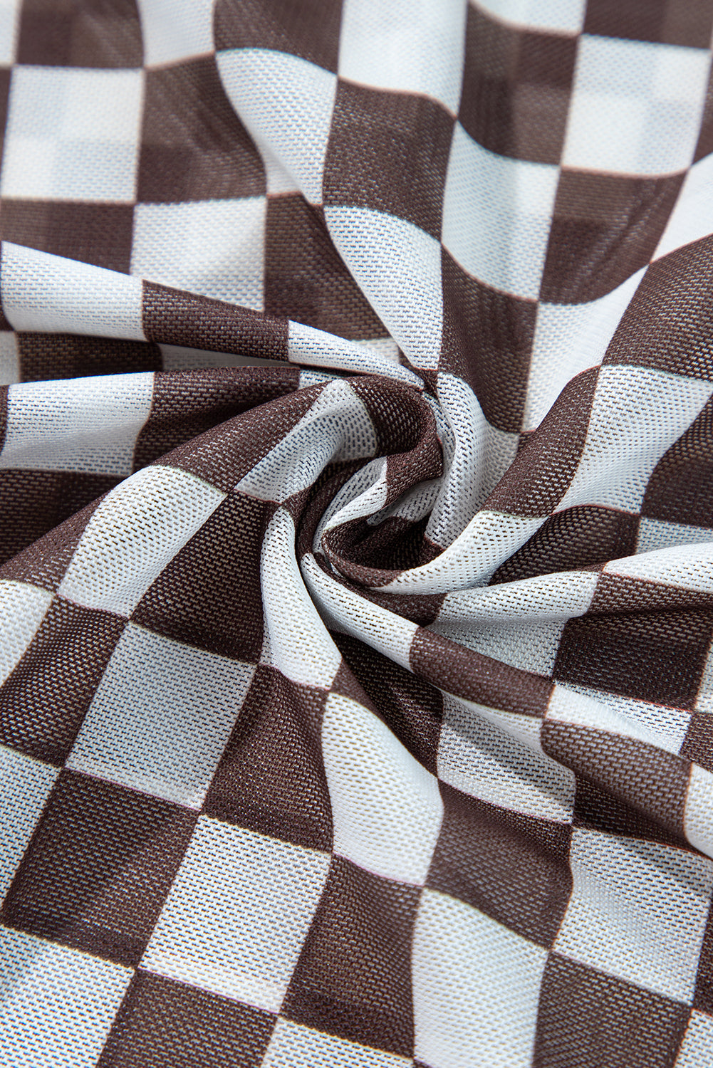 Black Checkered Printed Long Sleeve High Neck Bodysuit