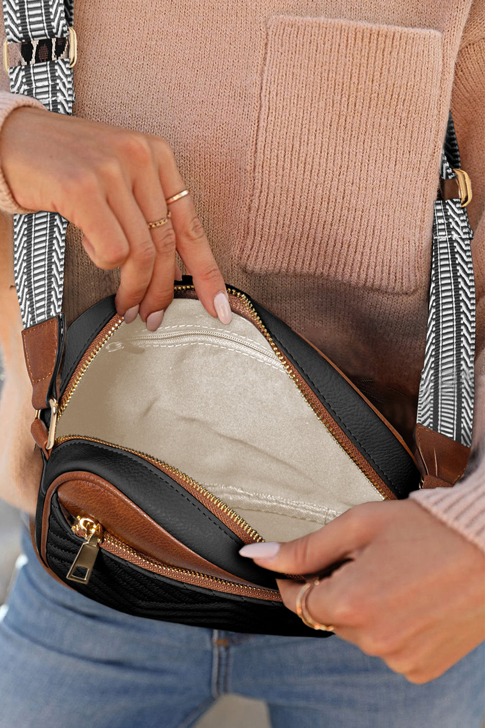 • The adjustable crossbody strap allows for comfortable wear and easy customization to suit your preferred length and style.