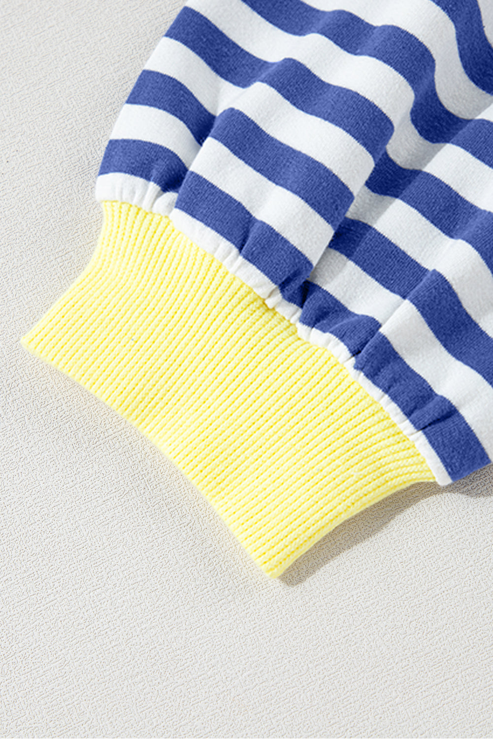 Blue Stripe Oversized Contrast Trim Pullover Sweatshirt