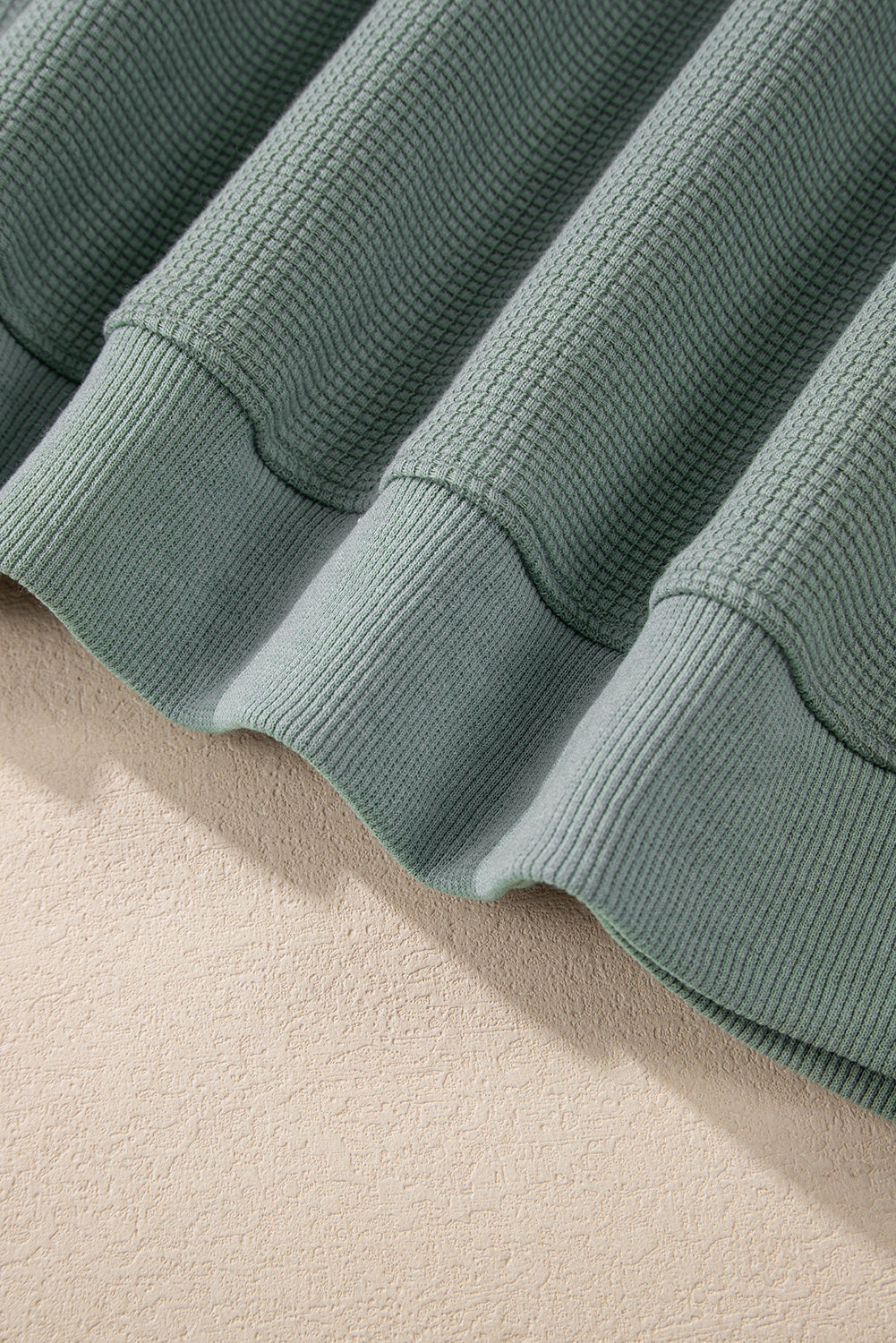 Clearly Aqua Waffle Knit Drop Shoulder V Neck Top