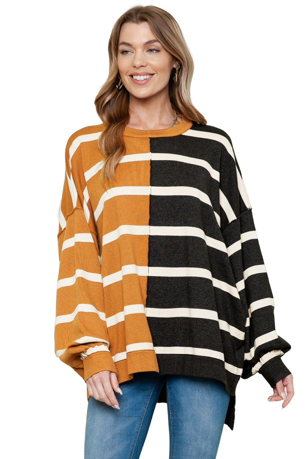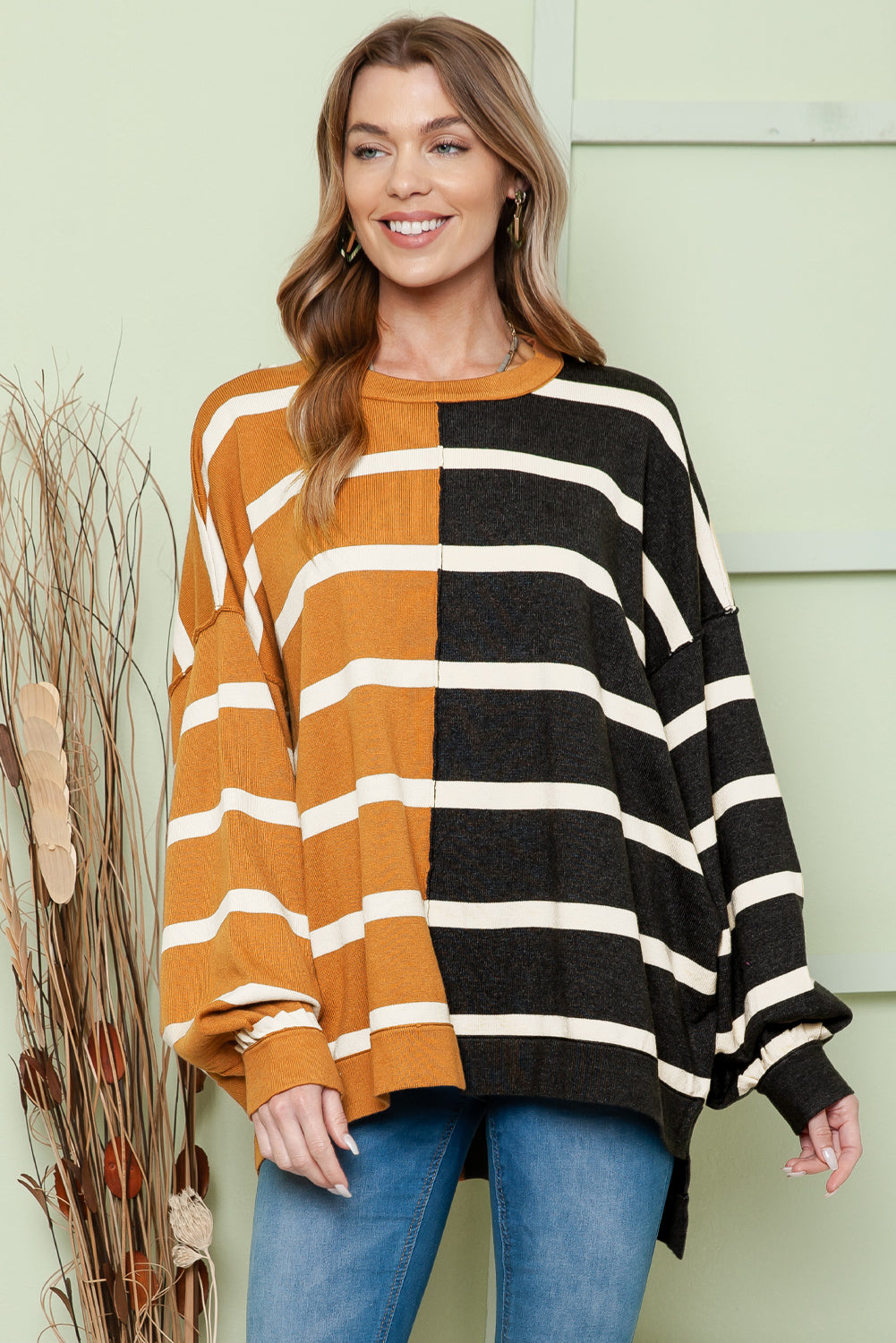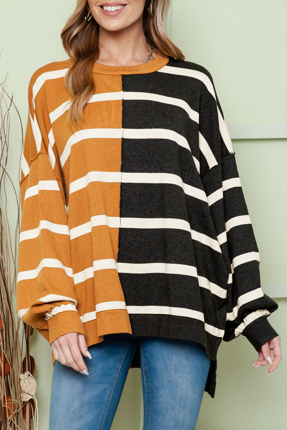 Contrast Striped Print Oversized Dropped Shoulder Top