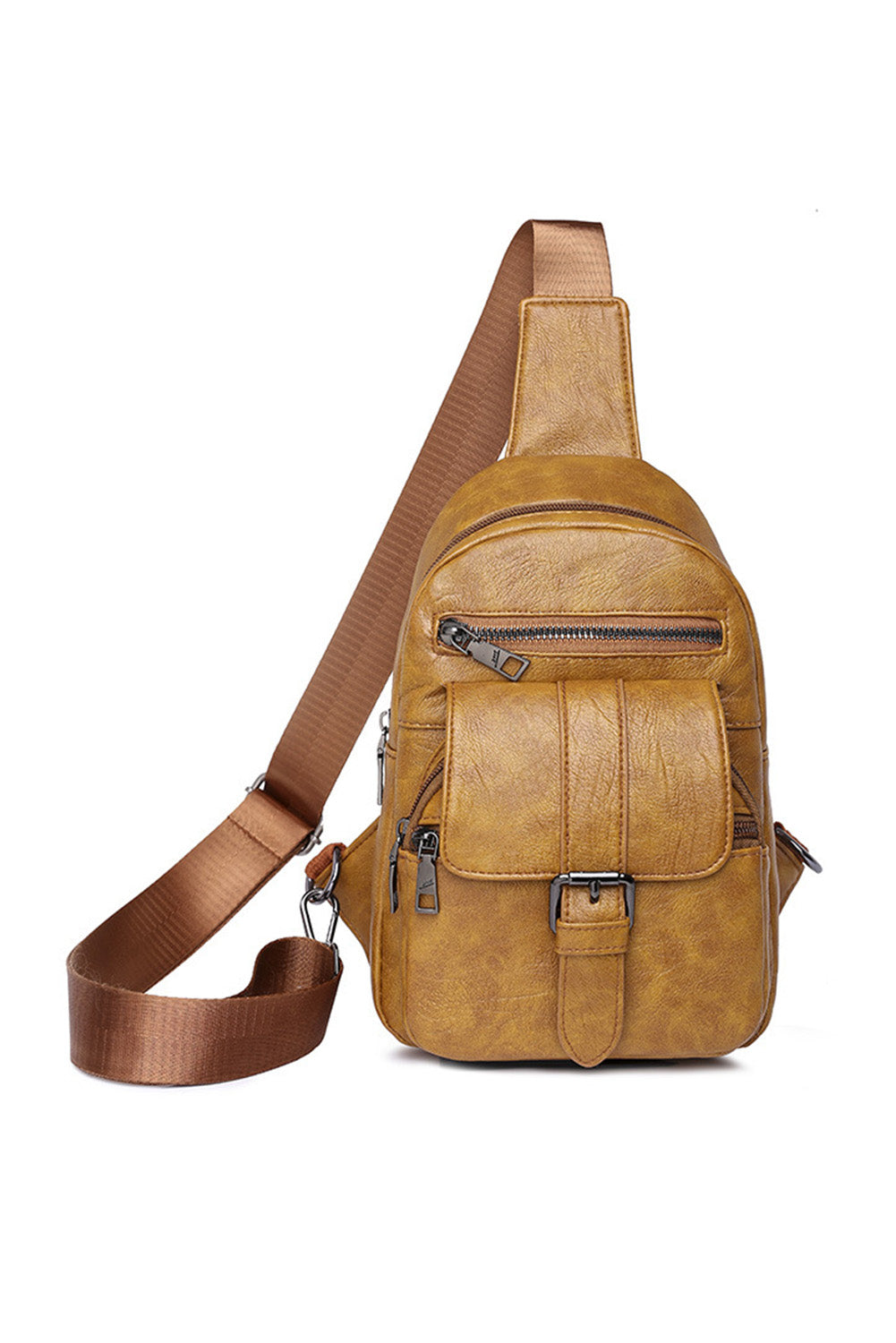 Khaki Vintage Zipper Multi Pockets Sling Bag