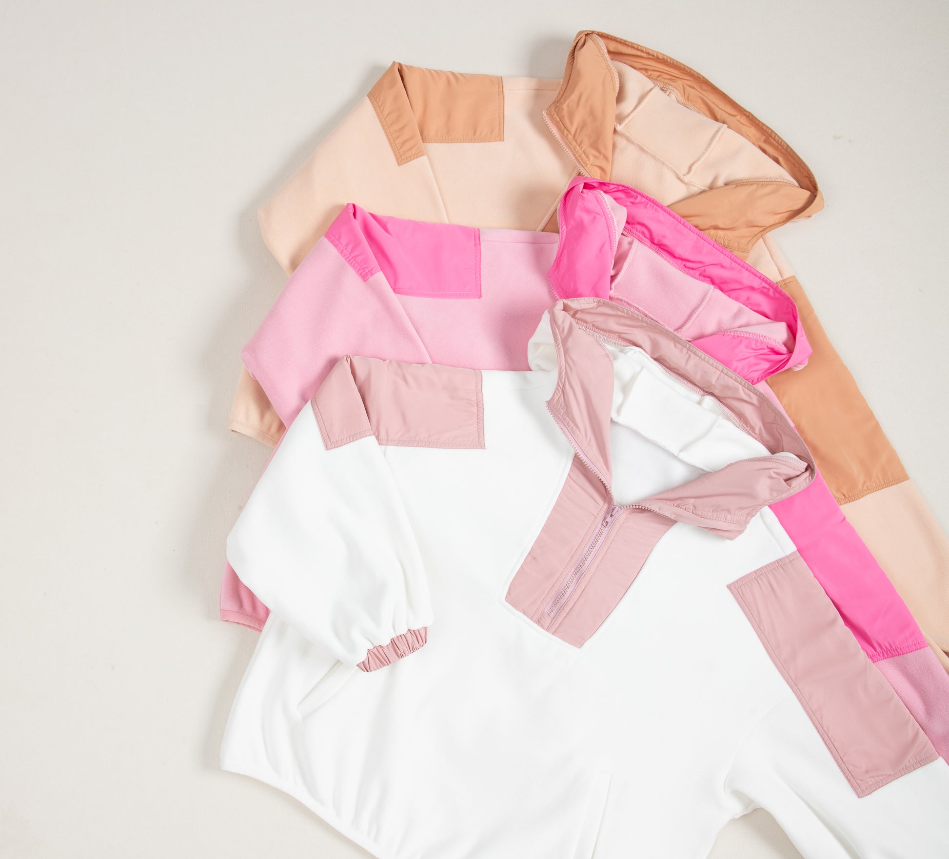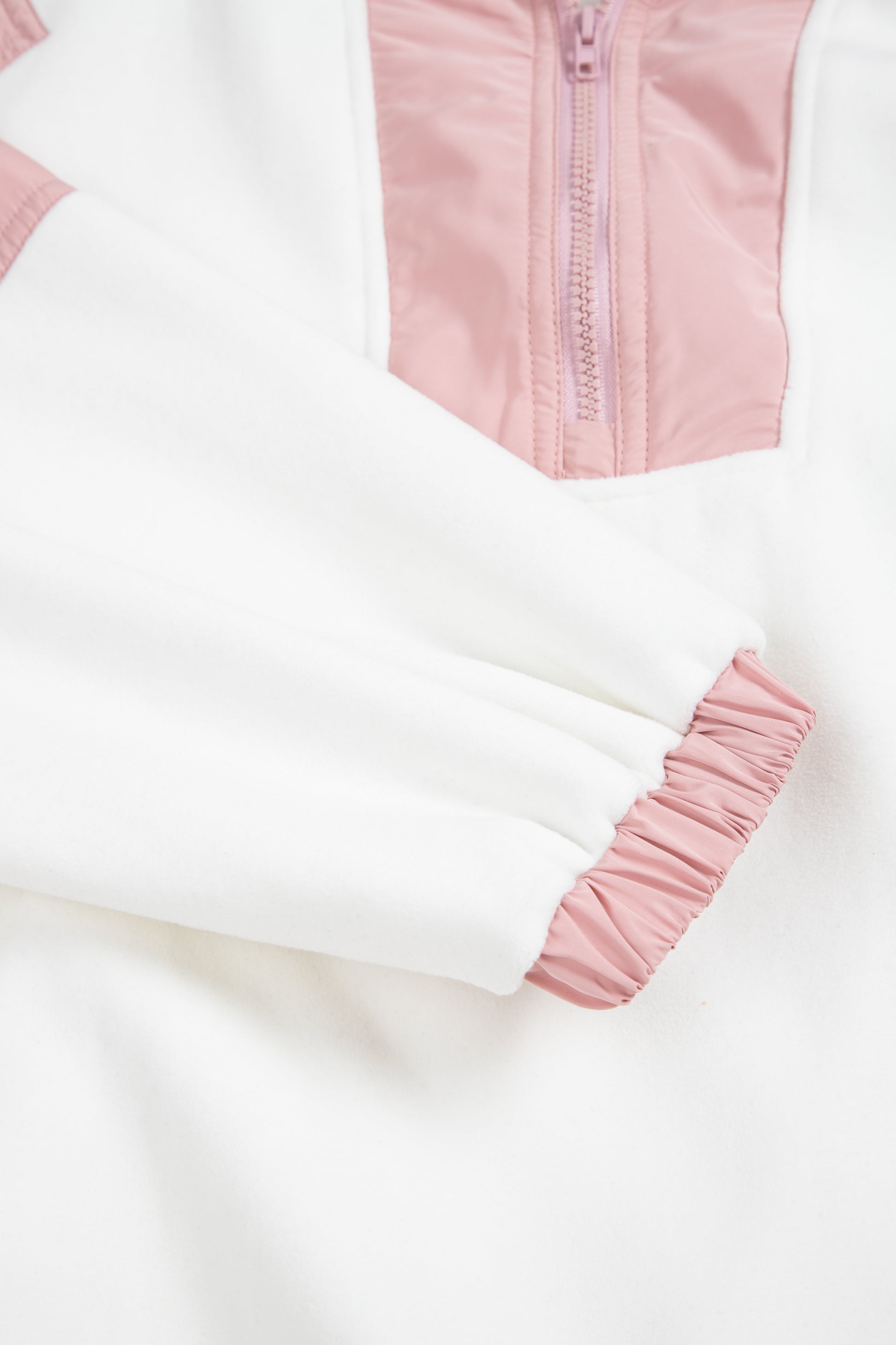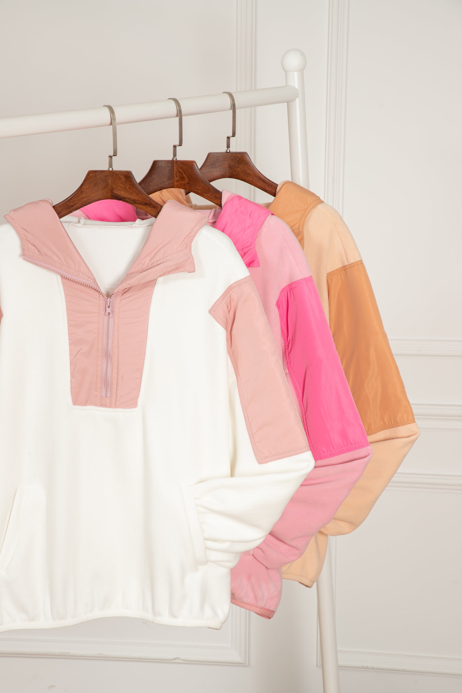 Light French Beige Colorblock Patchwork Half Zip Oversized Sherpa Hoodie