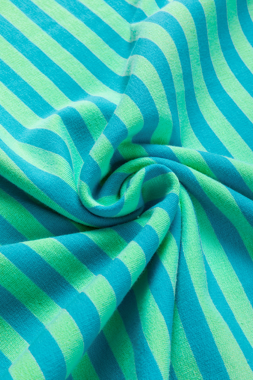 Sky Blue Stripe Oversized Contrast Trim Pullover Sweatshirt